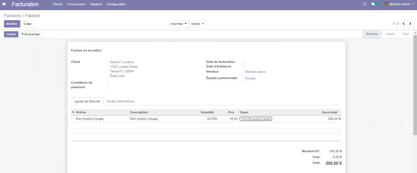 Pour confirmer votre facture, il vous suffit de l'ouvrir et de cliquer sur "valider", vous pouvez autrement effectuer au préalable les modifications nécessaires en cliquant sur modifier.